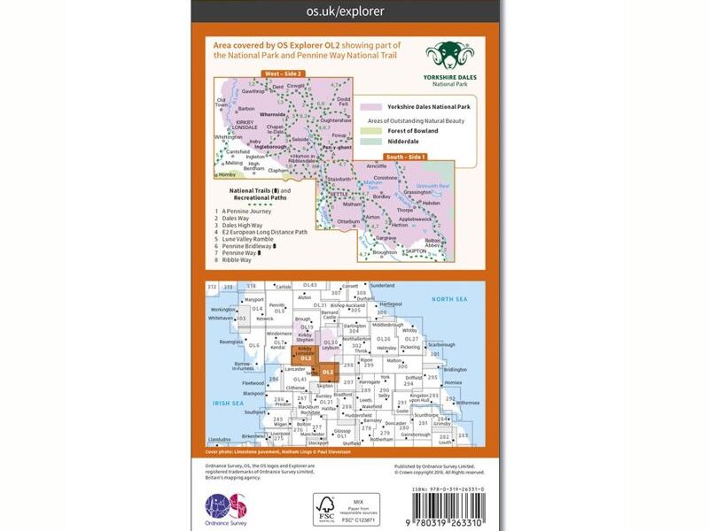Map of Yorkshire Dales – Southern & Western Area