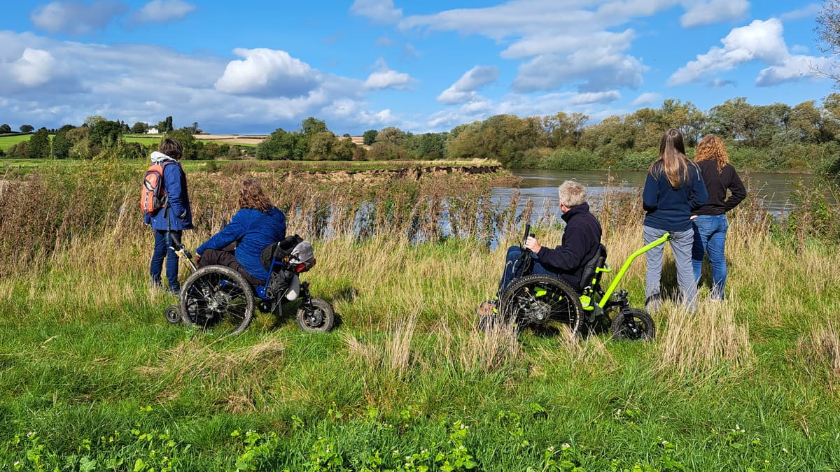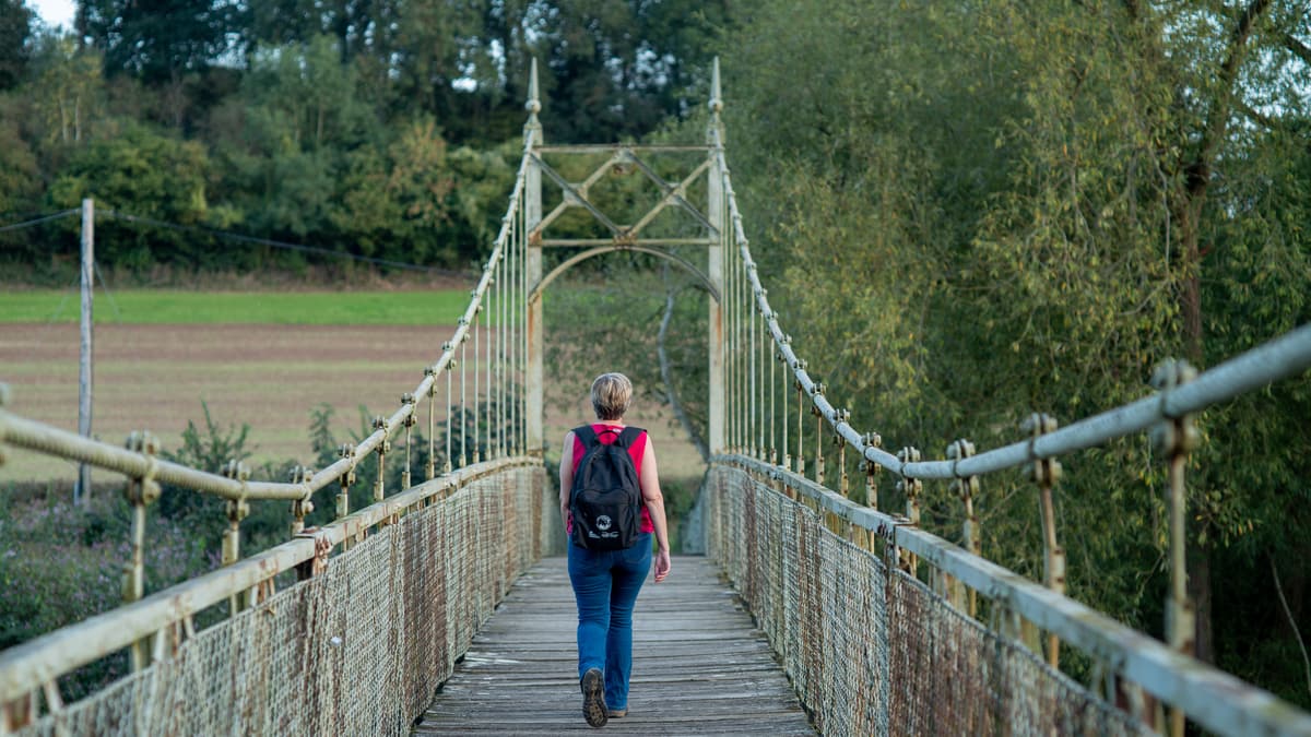 Soon after the bridge, at Orchard Cottage, turn right along a hidden, shady footpath. Go through the gate into the field and walk along the right hand edge of the field (be sure to take a moment to admire the views to Foy Church to the right). Go through a kissing gate and along the farm track. At the end of this field go through another kissing gate, up steps and through Monks Grove wood. Turn left out of the wood to walk along the edge of the woodland. When it ends, keep straight on across the field towards poplar trees, passing a pond to your right. Follow the track beside the hedge up to a junction of paths. Turn right at the junction with the farm track. Immediately the track bears left (to The Cot), but the Wye Valley Walk keeps straight on into an expansive field. The route turns left here to follow the hedge on your left, but just to your right on the riverbank is a nicely placed bench looking across the Wye to Backney Common – perfect for taking a moment to rest and admire the view.