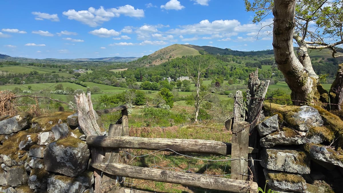 At the church, turn right along a minor road and pass the chapel on the right. You will soon hear the sound of the Wye below you. Continue on this road and pass Hodrid on the left. Eventually the road forks. Take the right fork up to, and through, a gate onto Trembyd.