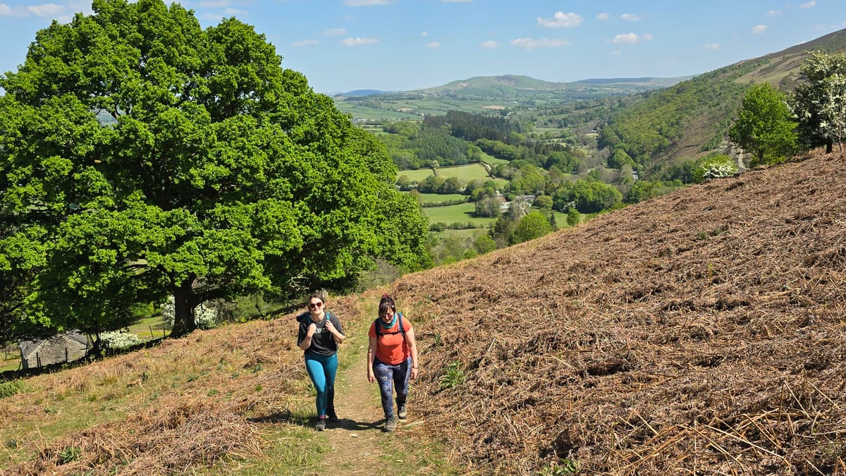 The route continues on with overhanging trees that are mostly birch and cherries. Keep going on as the track leaves the National Trust land, passing through several gates along the way. Eventually you come to a tarmac lane. Go left to cross a bridge and then keep right along the lane signposted Newbridge-on-Wye. After 0.8km the road bears right at Upper Cefn Coed Farm but the path goes straight ahead through a pedestrian gate into the field. Follow the hedge to your left across the field, to a gate in the far left hand corner. Go through the gate and turn right down steps, over a wooden footbridge and up the other side. At the top of the gully, walk a short distance along the field edge until you can see a pedestrian gate in the fence line to the right. Go through the gate and head straight across the field towards the left hand fence and then on to a veteran oak tree. After the 2nd oak tree you’re looking for a pedestrian gate in the fence ahead. Go through the left hand gate and then over a board walk. Now follow the fence to your right to the corner of the field, crossing another boardwalk on the way. Go through the gate and turn left, down the farm track to Ty’n-y coed farm. Turn right in front of the farm and walk to the far left hand corner of the field.