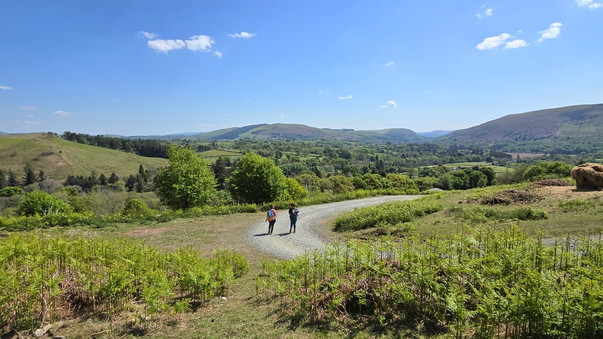 Cross the bridge and turn left, soon you’ll arrive at the junction of the rivers Wye and Marteg, where a well-placed bench makes for a pleasant refreshment stop. Then, when you’re ready, go through a gate and turn right when you reach the lane. Climb uphill and at the first house on the right, Wernnewydd House (SN 964 655), look out for a track on the left leading up to a gate. This can be difficult to spot from the road when summer vegetation is tall – so pay close attention here. Go through the gate and start climbing up a narrow path between two fields. Go through another gate onto open moorland, following a steep climb parallel to the fence on the right, passing a small cottage. Keep on the path, which may be invaded by bracken during summer months, following the woodland boundary to your left and after a while you will spot a small wind turbine higher up the hill. Pass Coed Dolifor, owned by the Woodland Trust, on the right. Soon after the path levels out, passing a waymarker on the right. Continue in the same direction along the field access track, passing by the turbine.