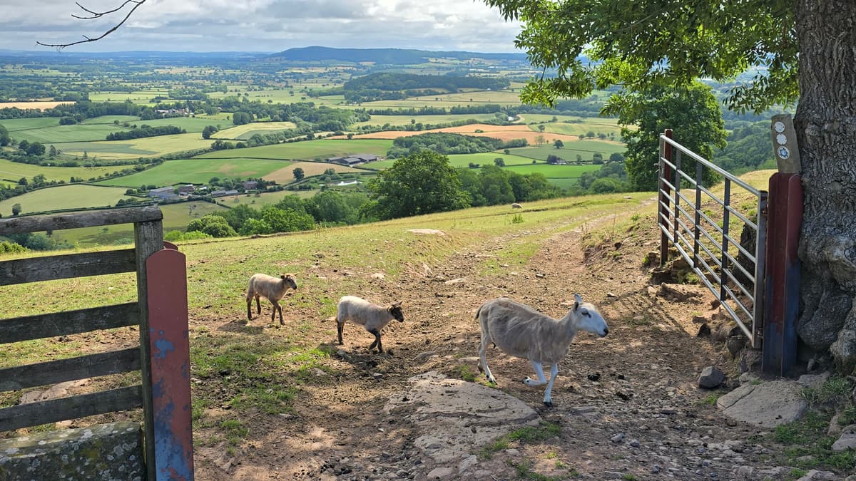 Pass through the gate and down to the old railway line. Turn right for a short distance along the embankment to a gate and stile. Go over the stile and continue on the farm track. Soon views to the Wye and the Herefordshire Plain open up ahead of you.